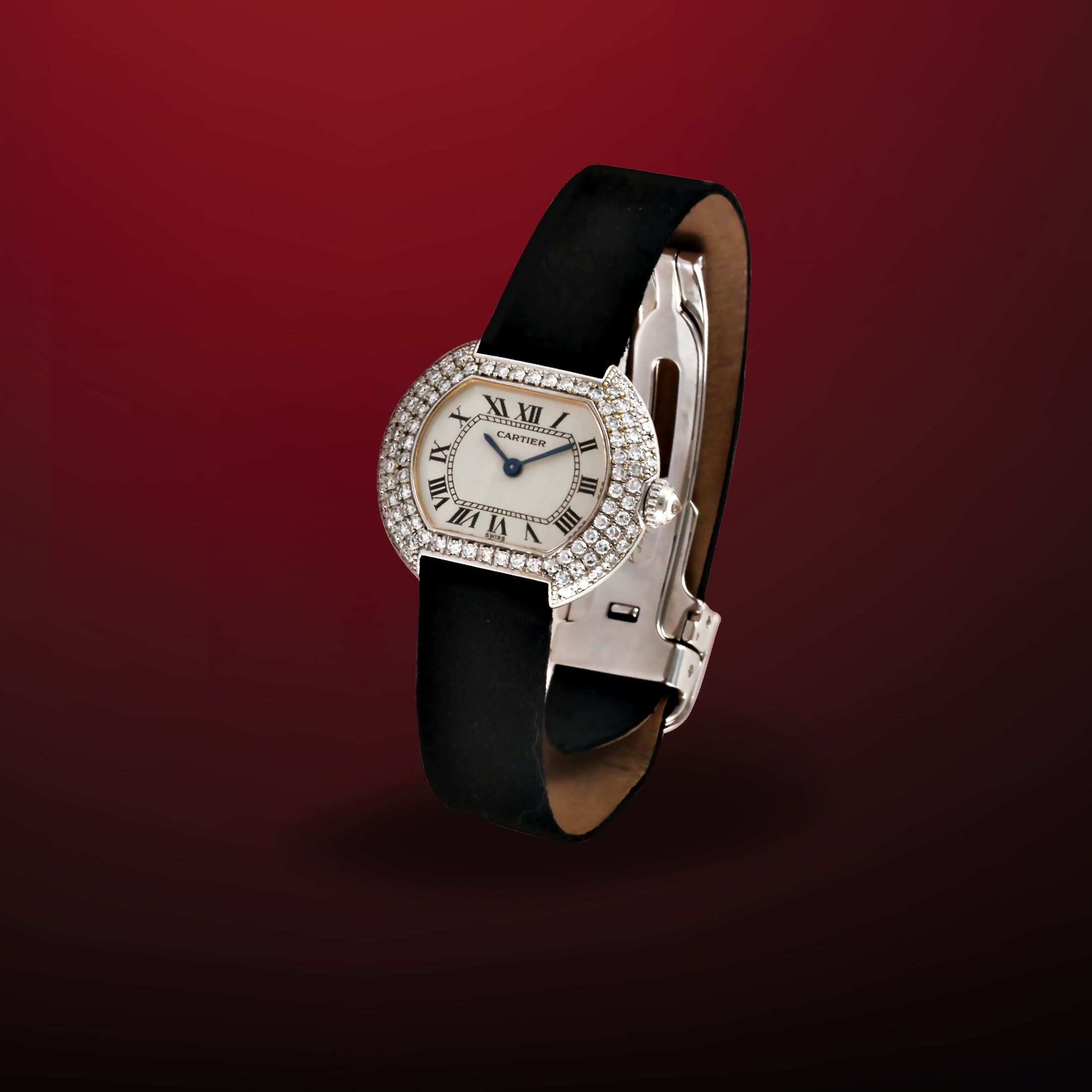Ref: 805790Cassa: in oro bianco 18K e brillanti, fondello serrato da viti. Vetro zaffiroQuadrante: argento, numeri Romani. Sfere EpeeMovimento: al quarzoCinturino: originale con chiusura deployante in oroAnno: 2000 circaDIM: 26 x 23 mm