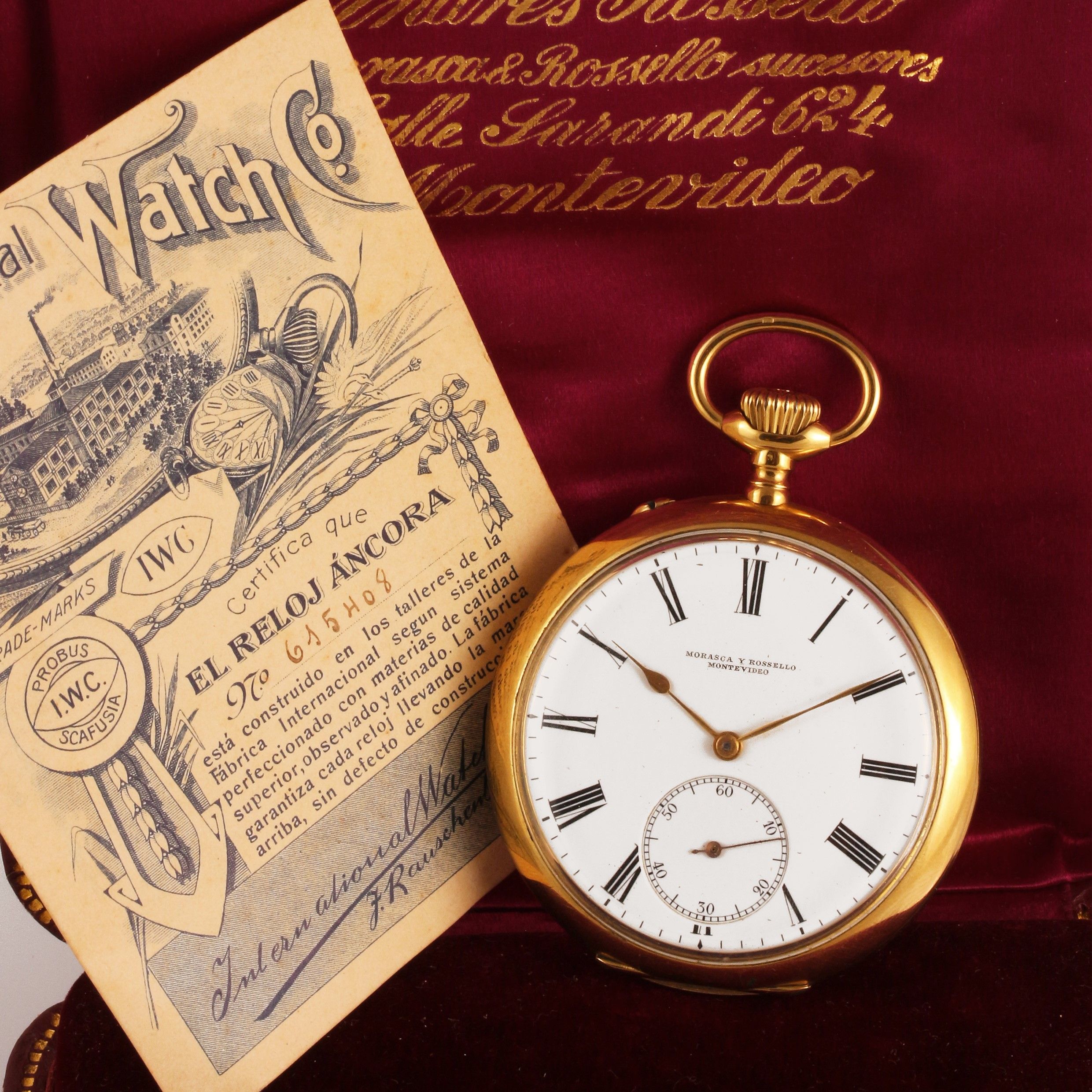 Cassa: firmata IWC, in oro giallo 18K, con incisioni. Couvette con incise medaglie commemorative