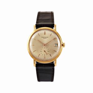 Ref: 3445J Cassa: in oro giallo 18K, fondello a vite Quadrante: argento, indici a bastone, piccoli secondi [..]