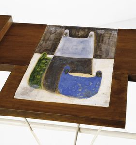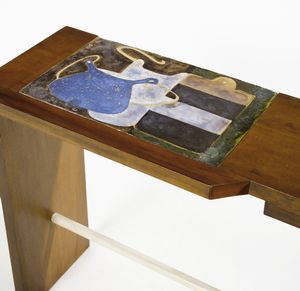 attribuito. Consolle con inserti in maiolica di Antonio Lucietti