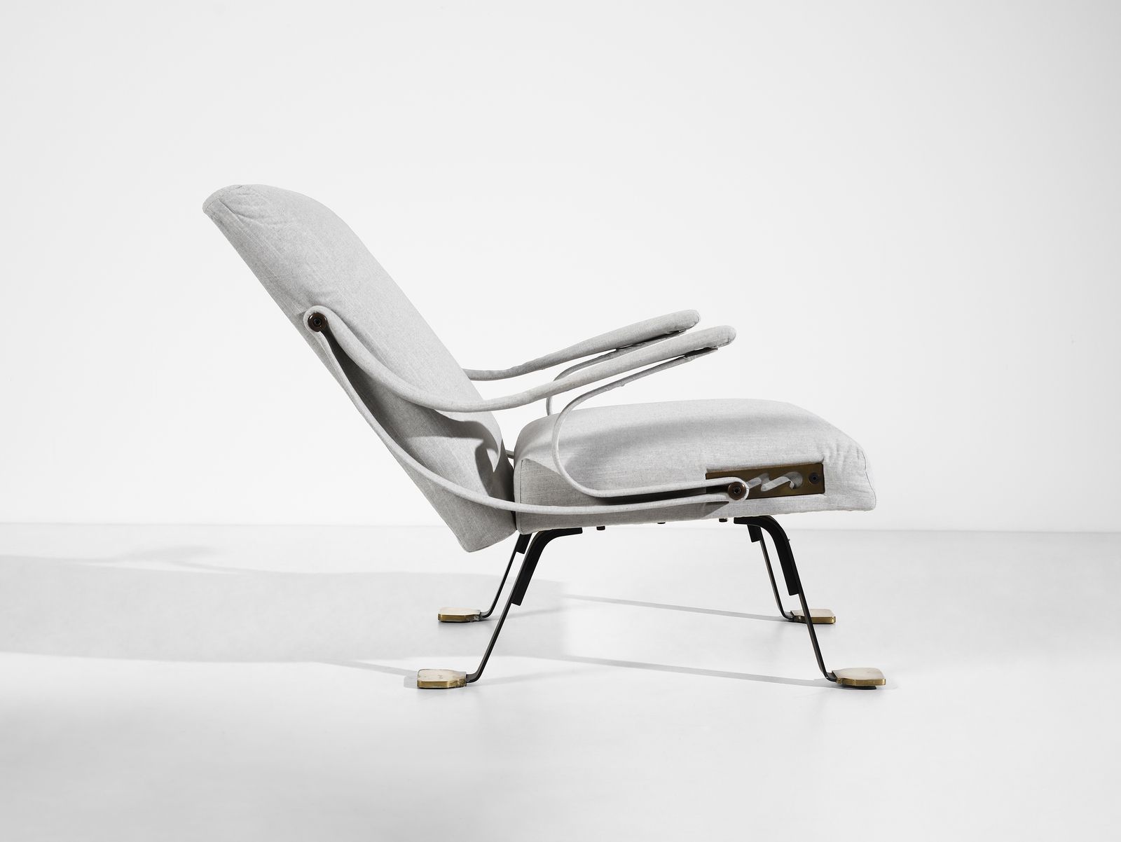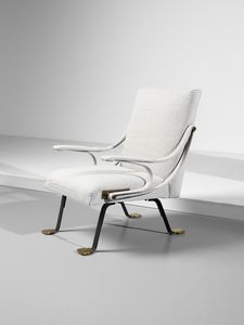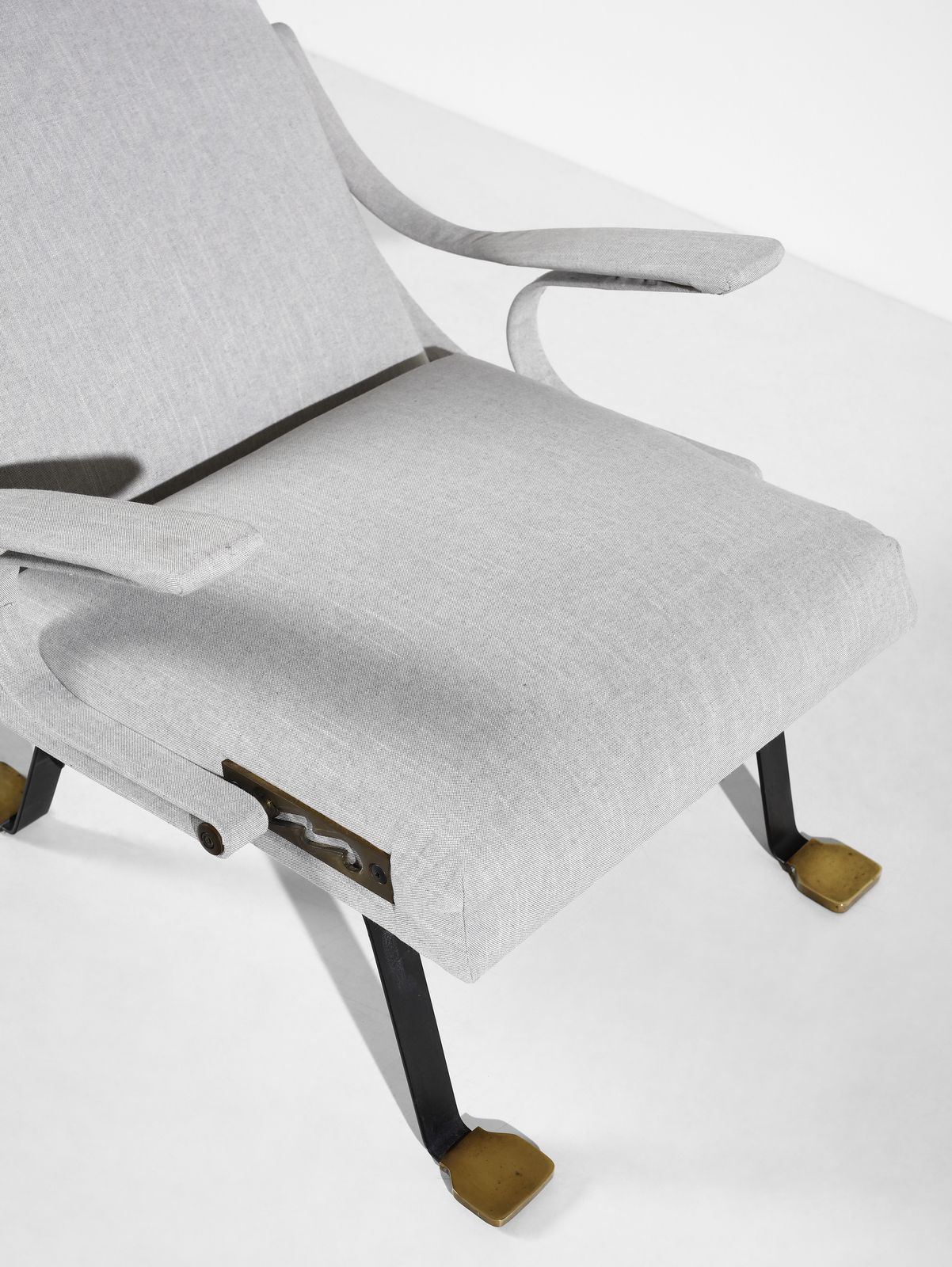Dimensioni: posizione coricata 67,00 x 70,00 x 106,00 cm. posizione dritta 84,00 x 70,00 x 84,00 cmBibliografia: Domus n. 398, gennaio 1963, p. d/96. V. Vercelloni, L'avventura del design: Gavina, Jaka Book, Milano 1987, fig. 7. I. de Guttry, M. P. Maino, Il mobile italiano degli anni ’40 e ’50, Laterza, Bari 1992, p. 179. G. Gramigna, Repertorio del design italiano 1950-2000 per l'arredamento domestico, Allemandi, Torino 2003, p. 50. G. Gramigna, Le fabbriche del design. I produttori dell'arredamento domestico in Italia, Allemandi, Torino 2007, p. 130