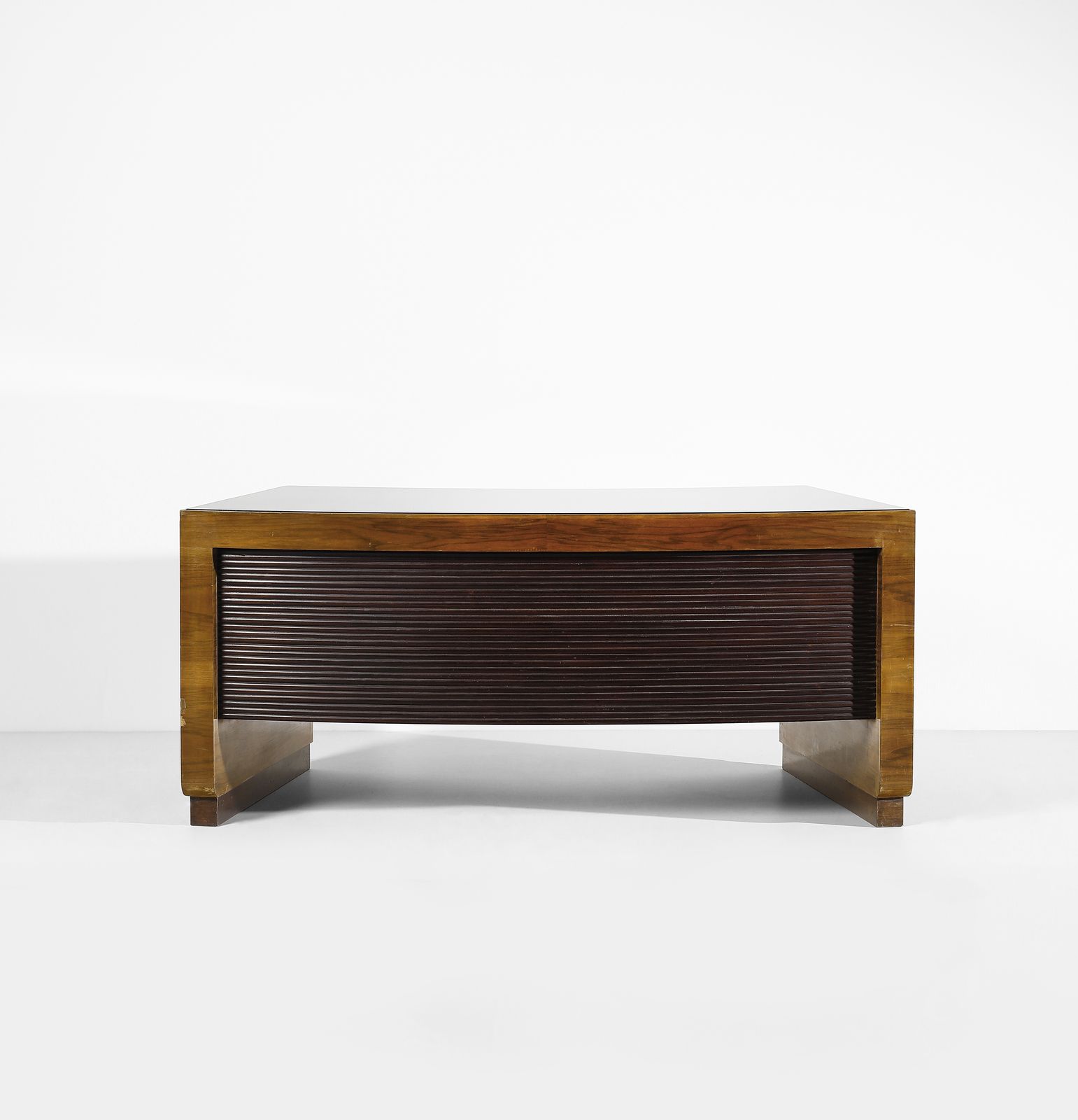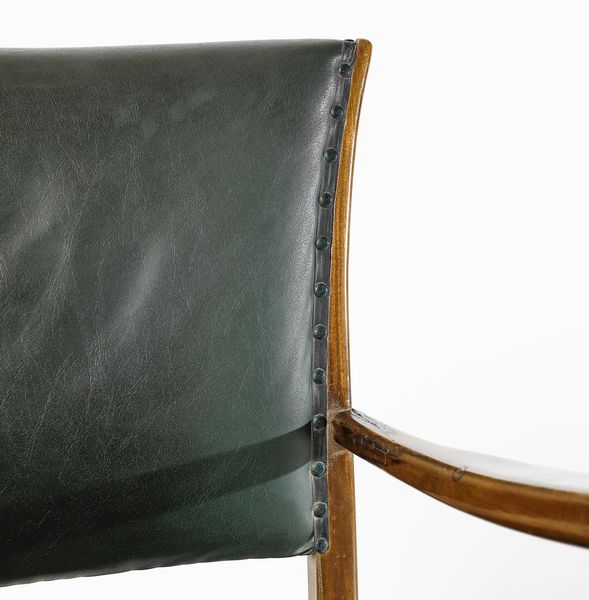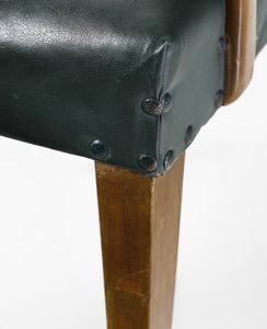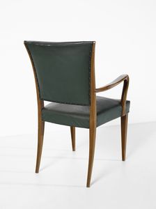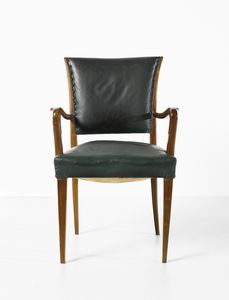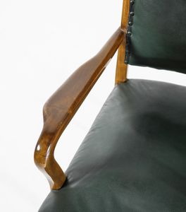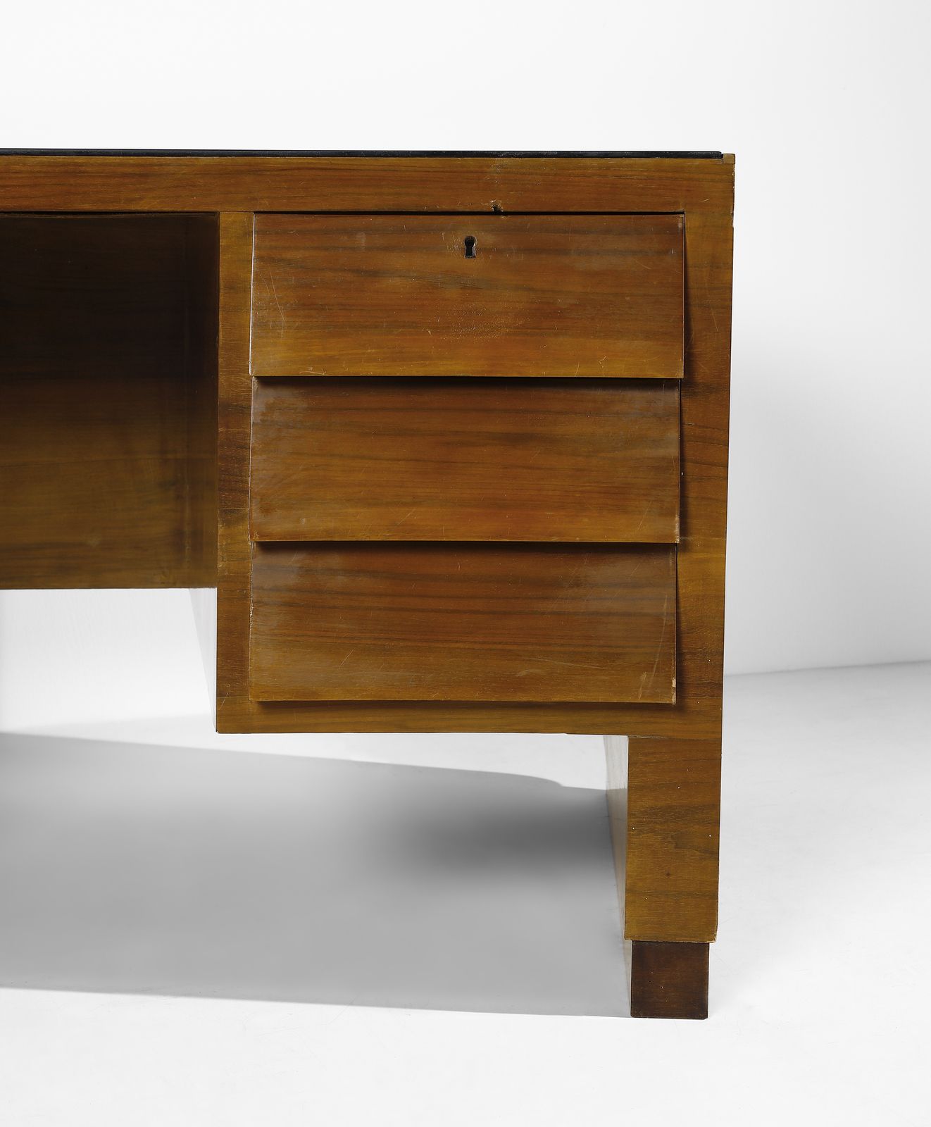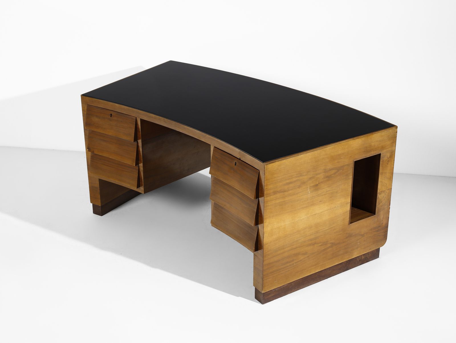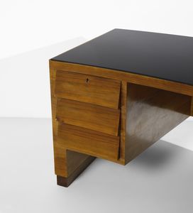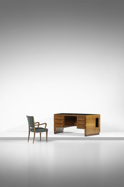 Anni Quaranta.Scrivania a sei cassetti, due vani laterali e fronte posteriore grissinato.Lotto accompagnato dall'expertise rilasciata da Gio Ponti Archives, MilanoDimensioni: poltroncina: 92,00 x 59,00 x 52,00 cm. scrivania 81,00 x 184,00 x 93,00 cm