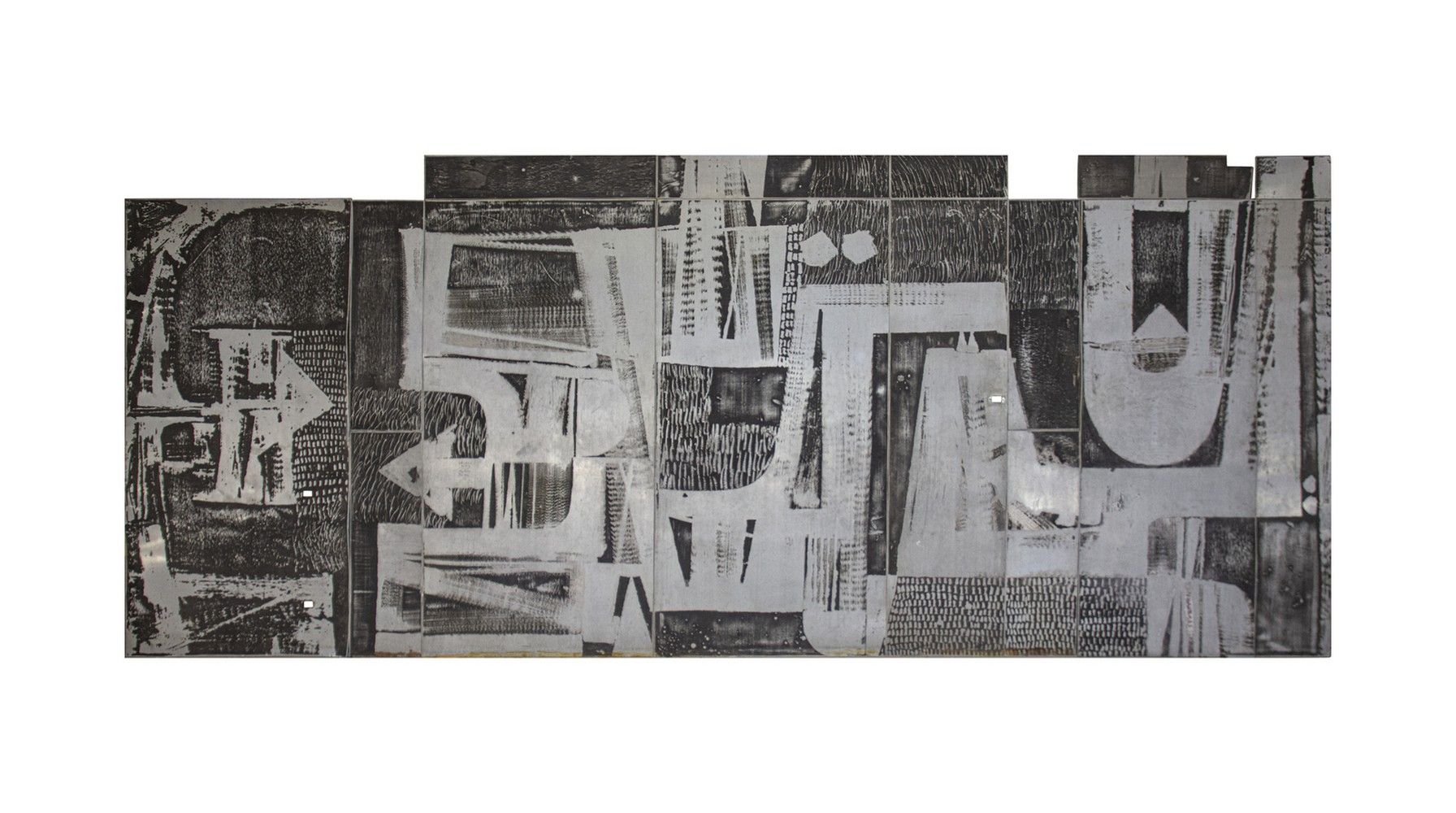 Firmato'GRUPPO NP2 TORINO NeRonE Patuzzi 72'.Costituito da una fascia inferiore di altezza 199 cm e una superiore di 19 cm. Larghezza dei pannelli che compongono il disegno in sequenza da sinistra a destra: 31,5 - 99 - 99 - 51 - 31,5 - 78 - 35 - 99 cmLotto accompagnato dal certificato di autenticità dell'Archivio Nerone Giovanni Ceccarelli, TorinoProvenienza: Collezione Fiorio, Genova