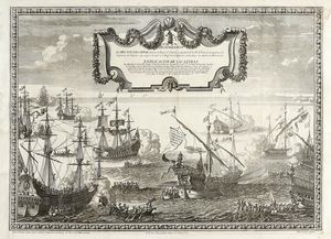 Bruxelles : E. H. Fricx, 1704. Acquaforte. mm 438x600. Foglio: mm 485x660. Con le firme del disegnatore Felipe [..]