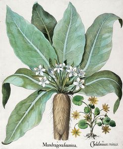 1613. Bulino, tempera e acquerello a colori. mm  470/472x390/394. Foglio: mm 505/520x405/410. 1) Mandragora [..]
