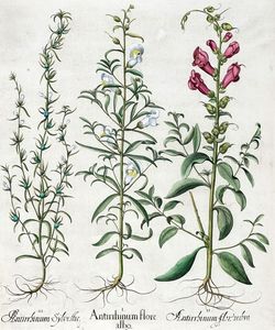 1613. Bulino, tempera e acquerello a colori. mm  470/472x390/394. Foglio: mm 505/520x405/410. 1)  Antirrhinum [..]