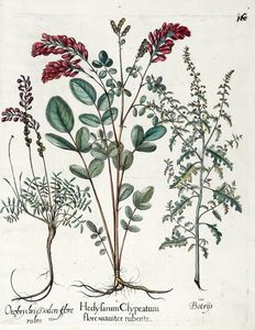 1613. Bulino, tempera e acquerello a colori. mm  470/472x390/394. Foglio: mm 505/520x405/410. 1)  Hedysarum [..]