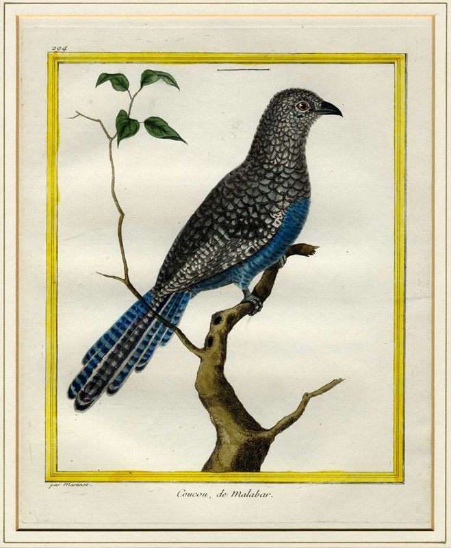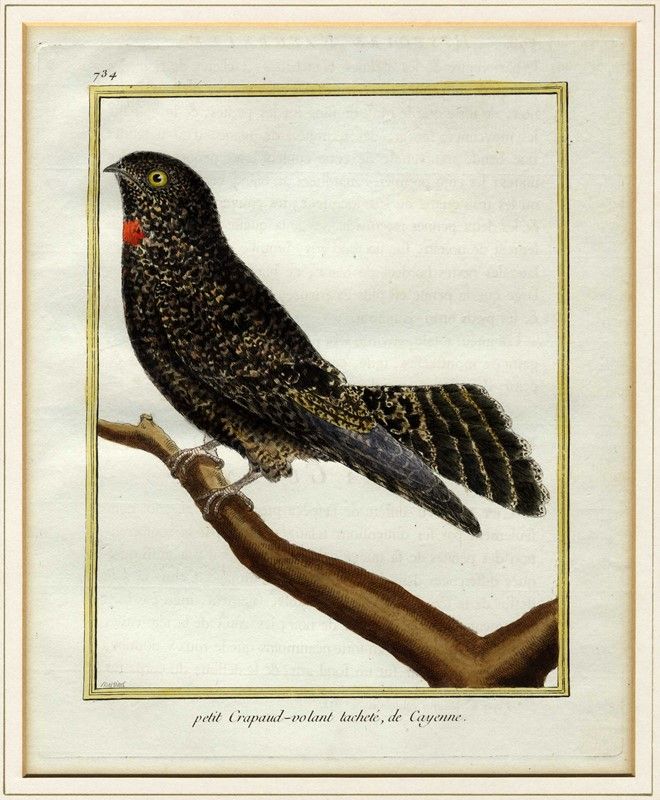 Acquaforte in coloritura. mm 258x211. 1) petit Crapaud-volant tacheté, de Cayenne; 2) troupiale a ailes rouges de la Louisiane; 3) Coucou, de Malabar. SI AGGIUNGONO: due cromolitografie con acquatici.