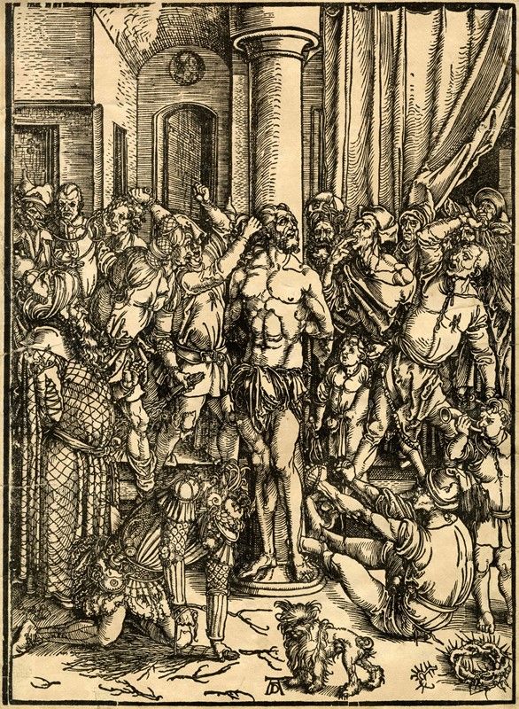 Xilografia. mm 388x284. Foglio: mm 398x294. Strauss (Woodcuts), 36. Da La grande Passione serie di dodici intagli stampata da Hieronymus Höltzel a Norimberga nel 1511. Traduzione del XVIII secolo su carta vergellata spessa.