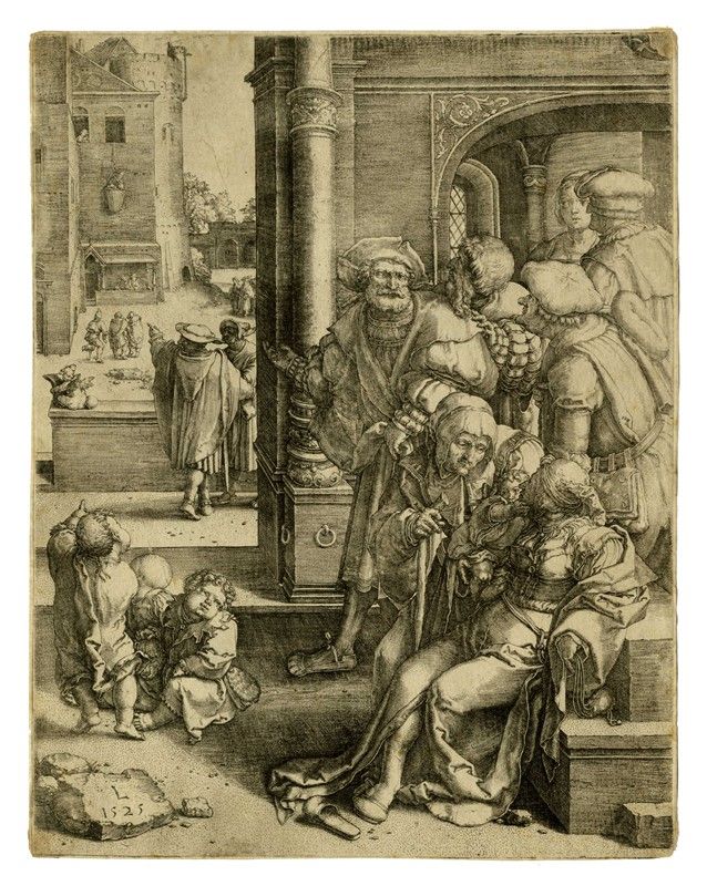 Bulino. mm 245x190. Bartsch, VII, 136. New Hollstein, 136. Con il monogramma e la data "1525" sulla pietra in basso a sinistra. Ottima prova nel I stato di 3 impressa su carta vergellata sottile con filigrana non identificabile.