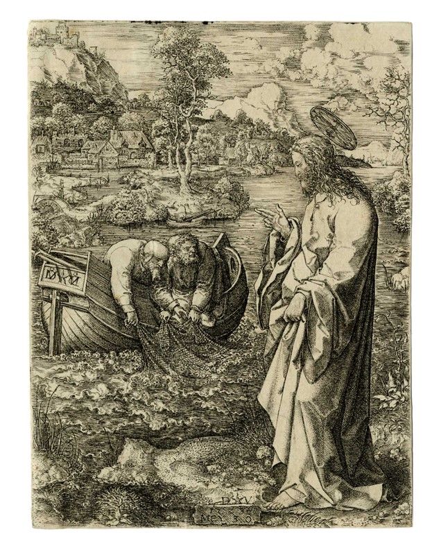 Bulino. mm 150x112. Bartsch, 3. Hollstein, 3. Sulla lastra in basso al centro il monogramma "DV inframezzato da una stella" e sulla pietra al di sotto la data "1523 / MEY 30". Il monogramma si trova ripetuto anche sulla poppa della barca. Ottima impressione su carta vergellata con filigrana "scudo con sfera sormontato da trifoglio". Al verso marchio della collezione del pittore e mercante di stampe viennese Josef Grünling (Vienna, 1785-1845) (Lugt, 1463).