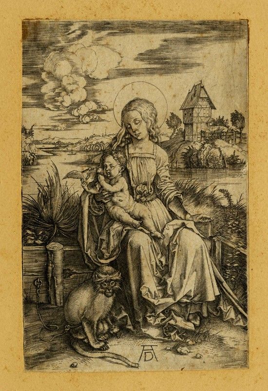 Bulino. mm 191x123. Meder, 30. Strauss (Engravings), 21. Schoch/Mende/Scherbaum (Kupferstiche und Radierungen), 20. Con il monogramma in basso al centro. Ottima impressione nella variante f/l secondo Meder, dopo la comparsa di alcuni graffi sul fondo attorno all'aureola della Vergine, stampata con bel contrasto su carta vergellata con filigrana grandi porte di città (Meder, 261. 1550-1580). Al verso marchio di collezione del pittore milanese Agostino Caironi (Lugt, 426).