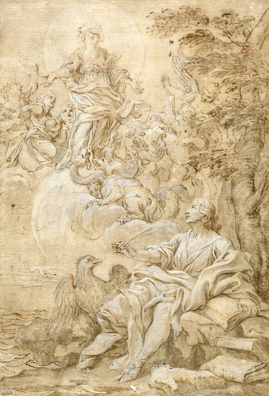 Penna e inchiostro bruno, pennello e acquerello marrone chiaro, lumeggiature in bianco. Carta vergellata lievemente spessa priva di filigrana. mm 428x295.