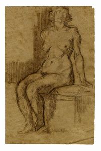 Carboncino su carta bruna. mm 390x250. Firmato a matita ai piedi della figura. Proveniente dallo stesso nucleo [..]