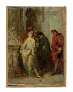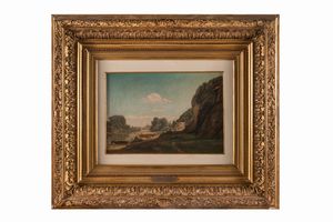 Inizio del XX secolo. Olio su tela. cm 15,5x27. Firmato in basso a sinistra. Meraviglioso bozzetto preparator [..]