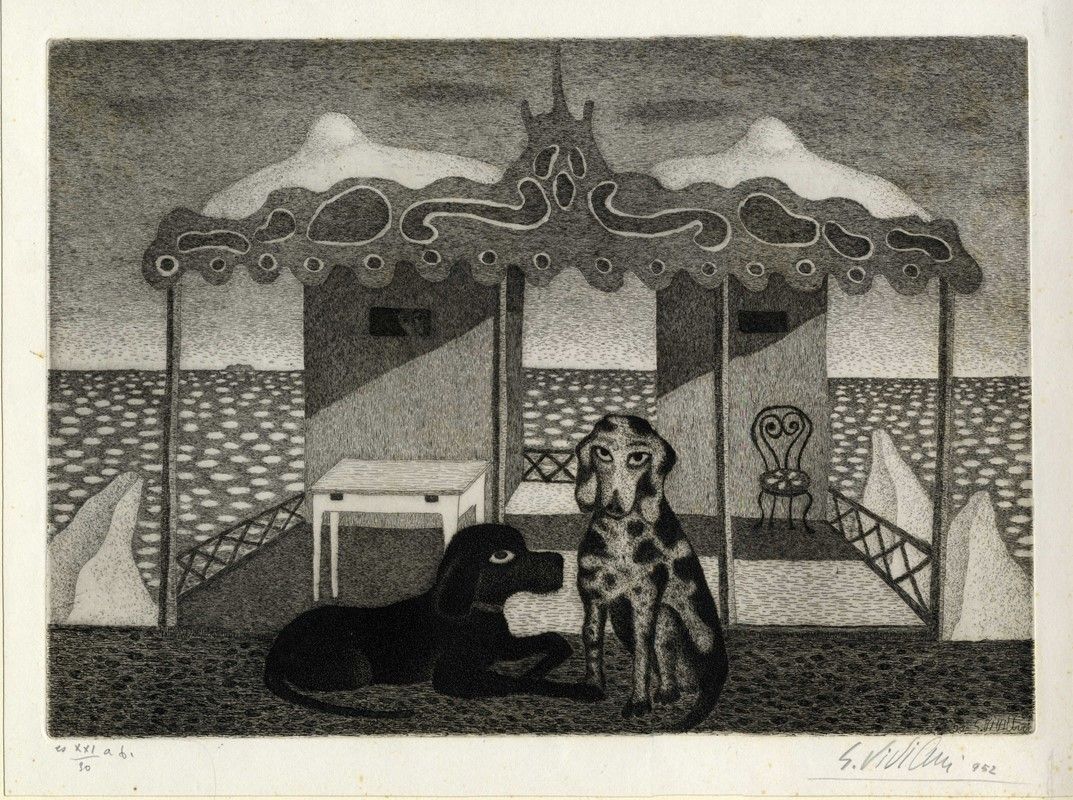 Acquaforte. mm 252x354. Foglio: mm 290x380 (visibile). Firmato e datato in lastra in basso a destra. Controfirmato e controdatato a matita in basso a destra. Indicazione di tiratura in numeri romani ed arabi a matita in basso a sinistra. Es. XXI/30.