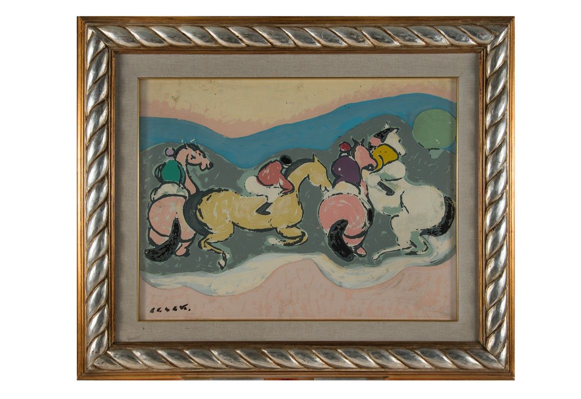 Olio su zinco. cm 50x65. Firma in basso a sinistra. Provenienza: Galleria d'arte Ariete di Venezia, la cui etichetta è applicata al verso insieme a una fotografia dell'artista con l'opera; importante collezione fiorentina.