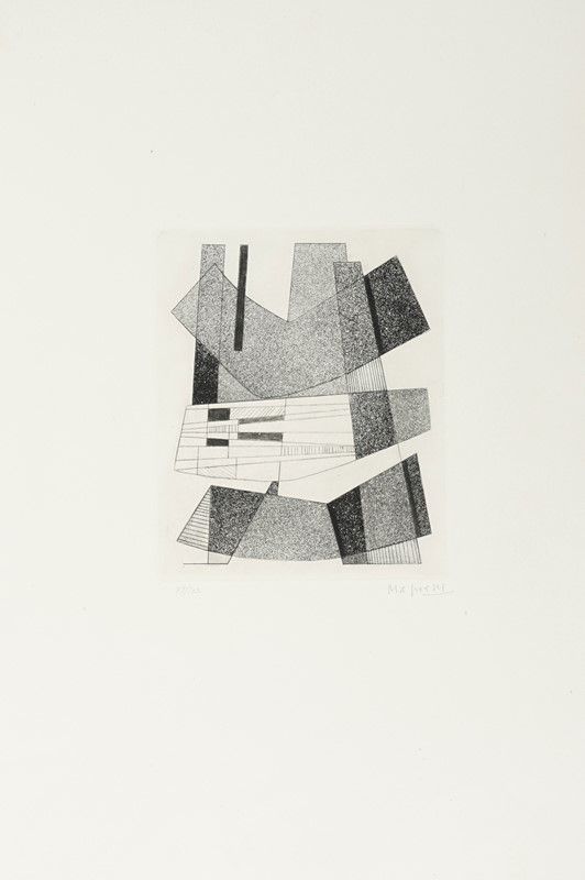 Acquaforte e dettaglio offset. mm 248x205. Foglio: mm 645x465. Firma a matita in basso a destra e tiratura in basso a sinistra. Doppia filigrana agli angoli a sinistra del foglio. Opera stampata da Il Bisonte. Es. 49/102.
