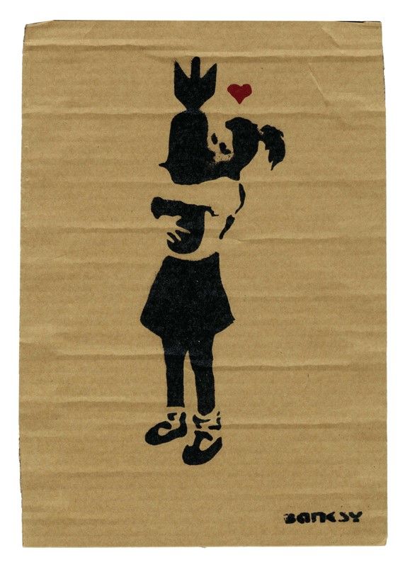Stencil su cartone. cm 29,7x21. Timbro in basso a destra: "Banksy". Al verso timbro di Dismaland e iscritto: "Enjoy your free art. Banksy is dismal" e tiratura in basso a destra. Accompagnato dal tick d'ingresso a Dismaland, con QR code e codice a barre. Il nome del partecipante è stato cancellato a pennarello per motivi di privacy. Provenienza: Performance di Banksy a Dismaland (agosto/settembre 2015); Collezione milanese.