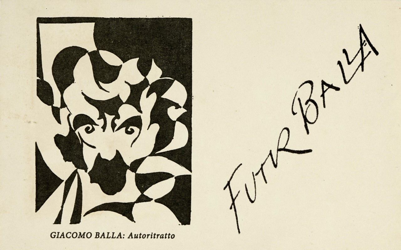 Cartolina litografica. mm 90x142. Stupendo autoritratto futurista dell'artista. Titolo sotto all'inciso e firma a stampa al lato destro della cartolina. Pubblicazioni: Scudiero M., Arte postale futurista, n. 188.