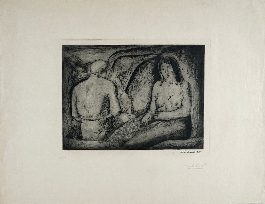 Acquaforte e acquatinta. mm 247x339. Foglio: mm 492x645. CARRA', 47. Firmata e datata a penna e inchiostro di china in basso a destra. Controfirmata a matita al margine inferiore destro. Numero di tiratura a matita in basso a sinistra. Tiratura in 75 esemplari nel 1927 da Graphica Nova, oltre a quattro o cinque esemplari di prova in 2 differenti stati variati essenzialmente nella inchiostratura. La lastra è stata successivamente biffata. Es. 73/75.