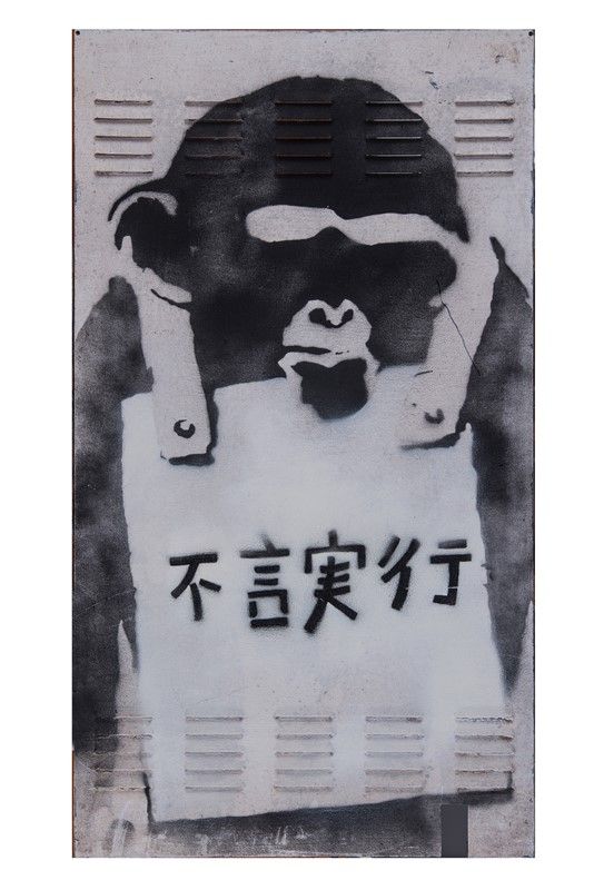 Vernice spray su sportello metallico di accesso. cm 95,5x52,5. Titolato in lingua giapponese in basso al centro. Opera accompagnata dal certificato di autenticità di Rare&Signed con il codice:R&SD30361659217.