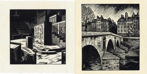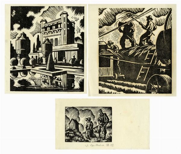 Xilografie. mm 60/200x80/236. Fogli: mm 90/280x150/330. Tutte firmate o siglate in lastra, alcune firmate e numerate a matita al margine inferiore.