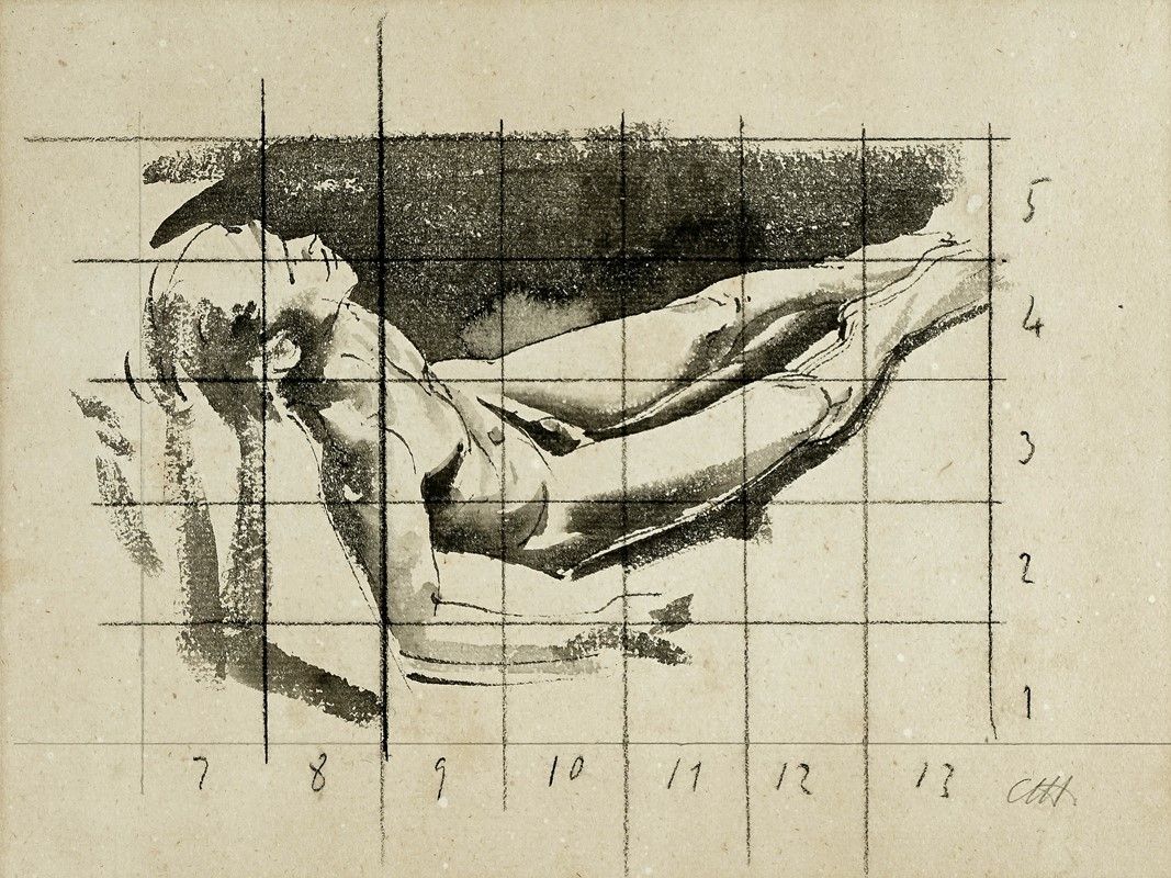 1) Maciste. Acquerello, carboncino e matita su carta greve. mm 500x350. Firma in basso a destra. 2) Studio sdraiato. Acquerello e carboncino su carta greve. mm 275x350. Firma in basso a destra.