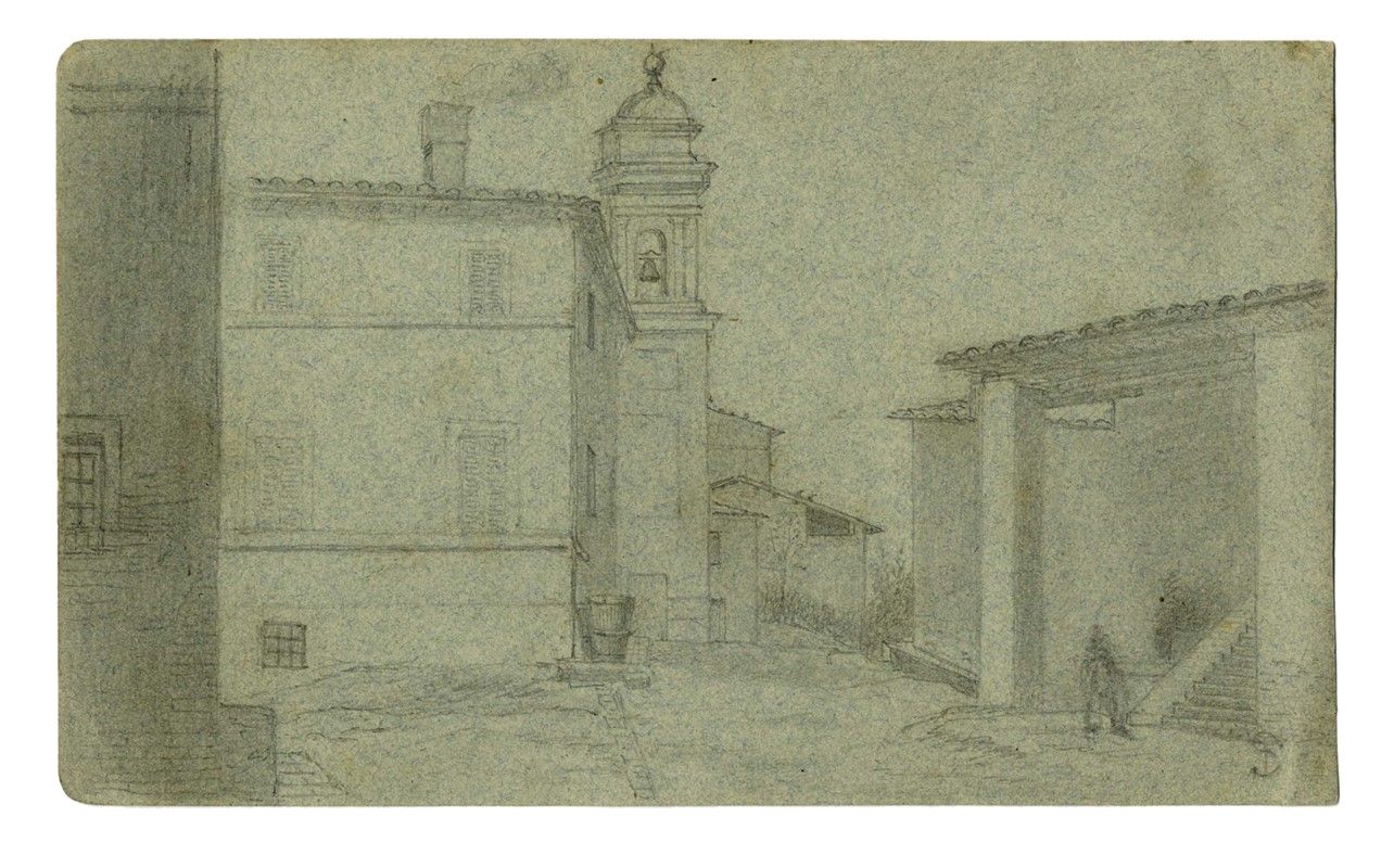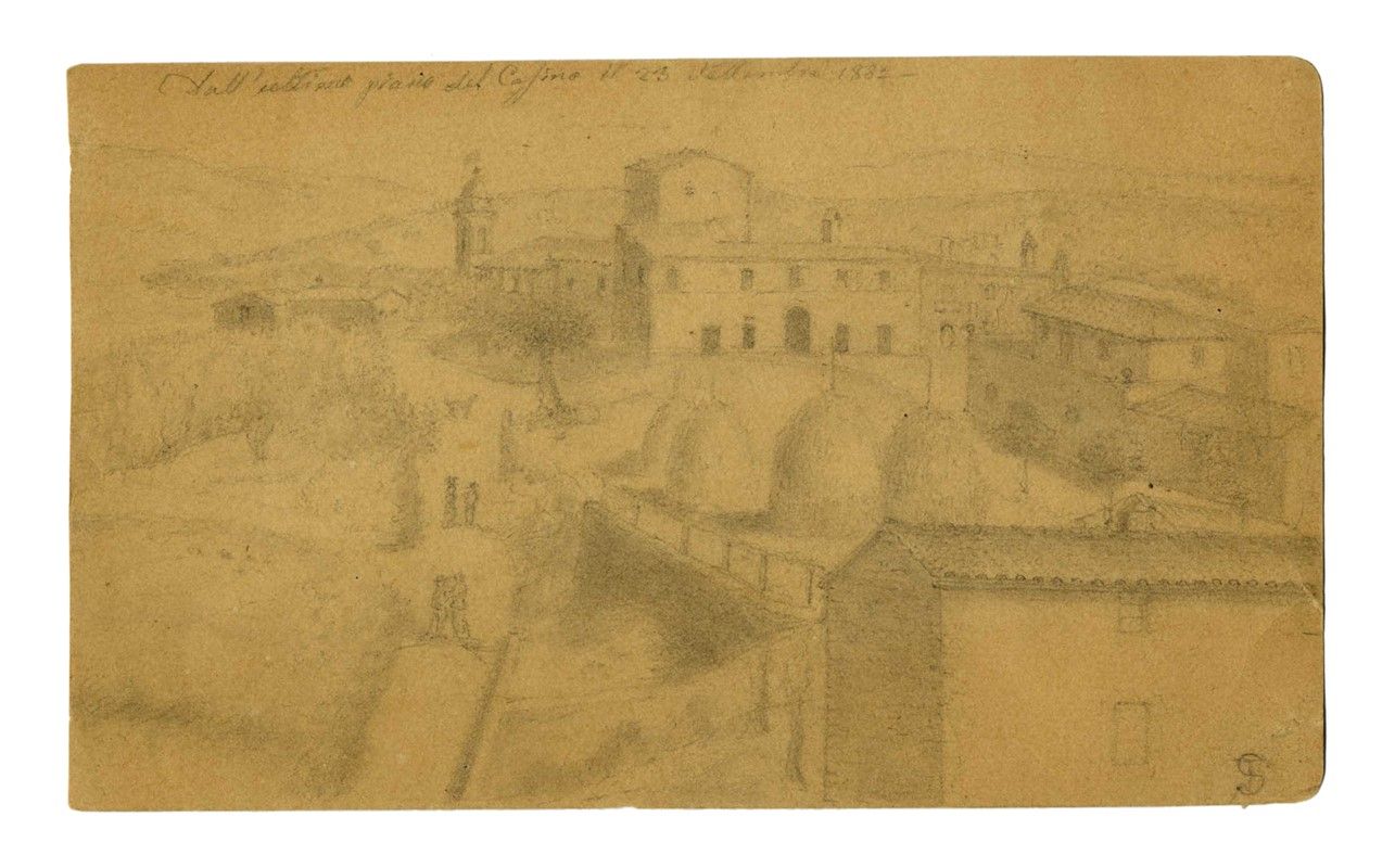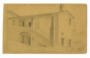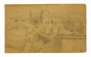 Matita su carta. mm 115x190 cad. Tutti firmati o monogrammati, alcuni datati, molti titolati, anche se alcuni in modo indecifrabile. Tra i titoli: Casetta del campanaro, Vignaglia, Fattoria..., Pelosella, La Villa..., La Fornace..., Fonte Viscola, Dall'ultimo piano del Casino, Le Grotte..., Casa Parrocchiale. La maggior parte dei fogli sembrano provenire dal medesimo quadernetto di schizzi, pochi disegni sono appunto schizzi. La qualità di questi scorci toscani è molto alta, accompagnata da un'eccezionale cura per il dettaglio.