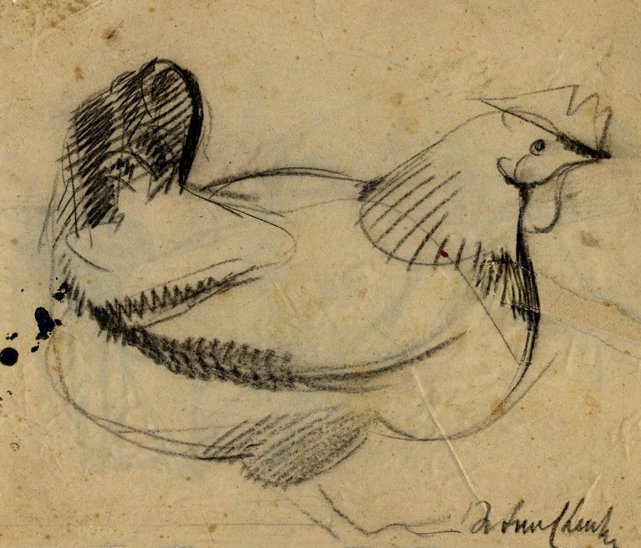 Matita e carboncino su carta. mm 153/470x130/320. Tutti firmati e la maggior parte datati. I soggetti rappresentati sono: figure e ritratti, sia maschili che femminili, studi di animali da cortile e paesaggi. Il nucleo è molto raro a trovarsi e dalla progressiva datazione delle opere si evince il percorso stilistico e artistico di Arturo Checchi.