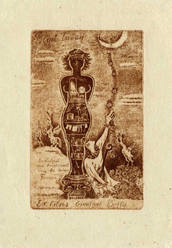 1) Ex libris Giovanni Botta. L'architettura è la madre delle arti. 1938. Fotoincisione. mm 130x80. Foglio: mm 215x155. MIRABELLA-BARDAZZI-BALLERINI. N 336. Timbro dell'artista al verso. 2) Ex libris Giovanni Botta. Die Herren Astronomen entdecken un bekannte Sterne. Fotoincisione. mm 140x95. Foglio: mm 155x105. MIRABELLA-BARDAZZI-BALLERINI. N 337. 3) Ex libris Giovanni Botta. Pierrot Lunaire e Geblumet und durchsusset sind die holden Frauer. Fotoincisione. mm 110x70. Foglio: mm 160x113. MIRABELLA-BARDAZZI-BALLERINI. N 338.