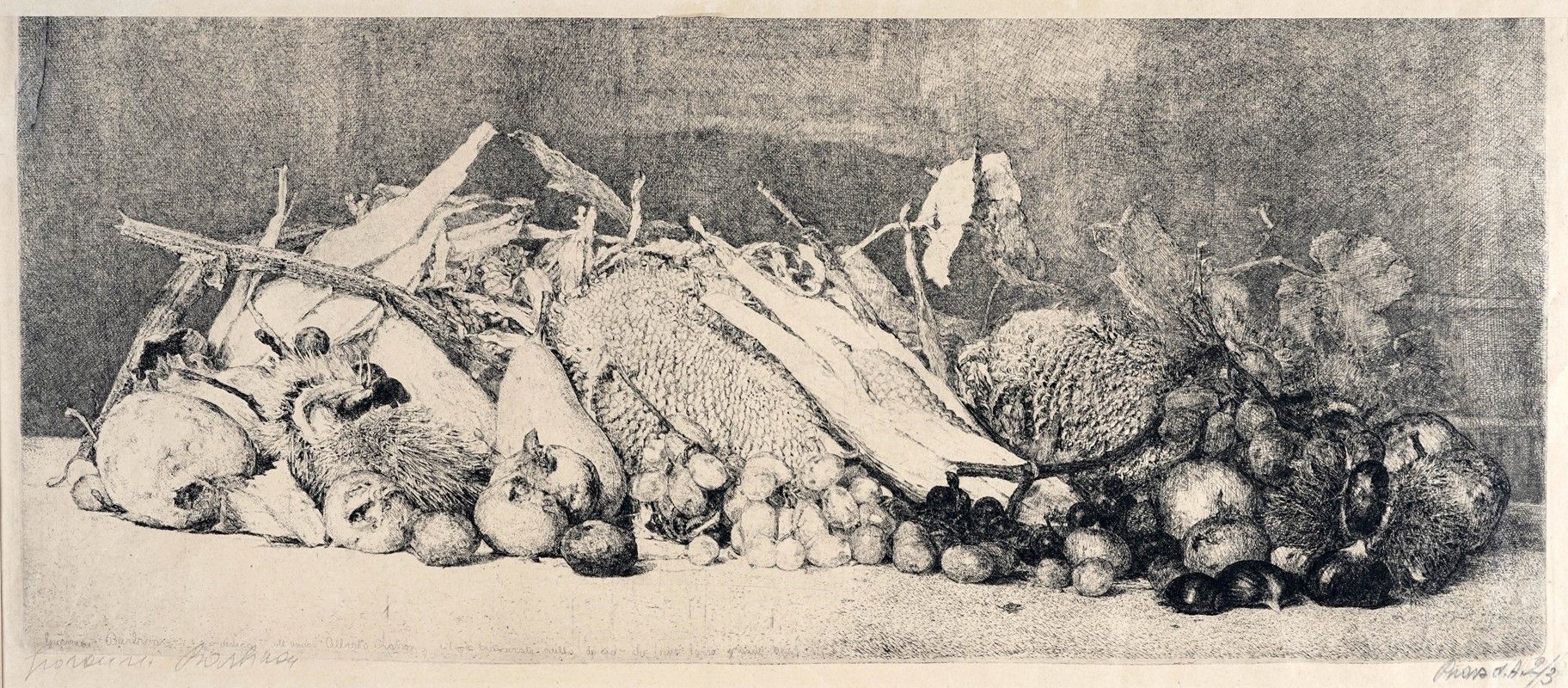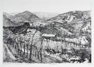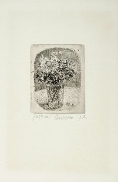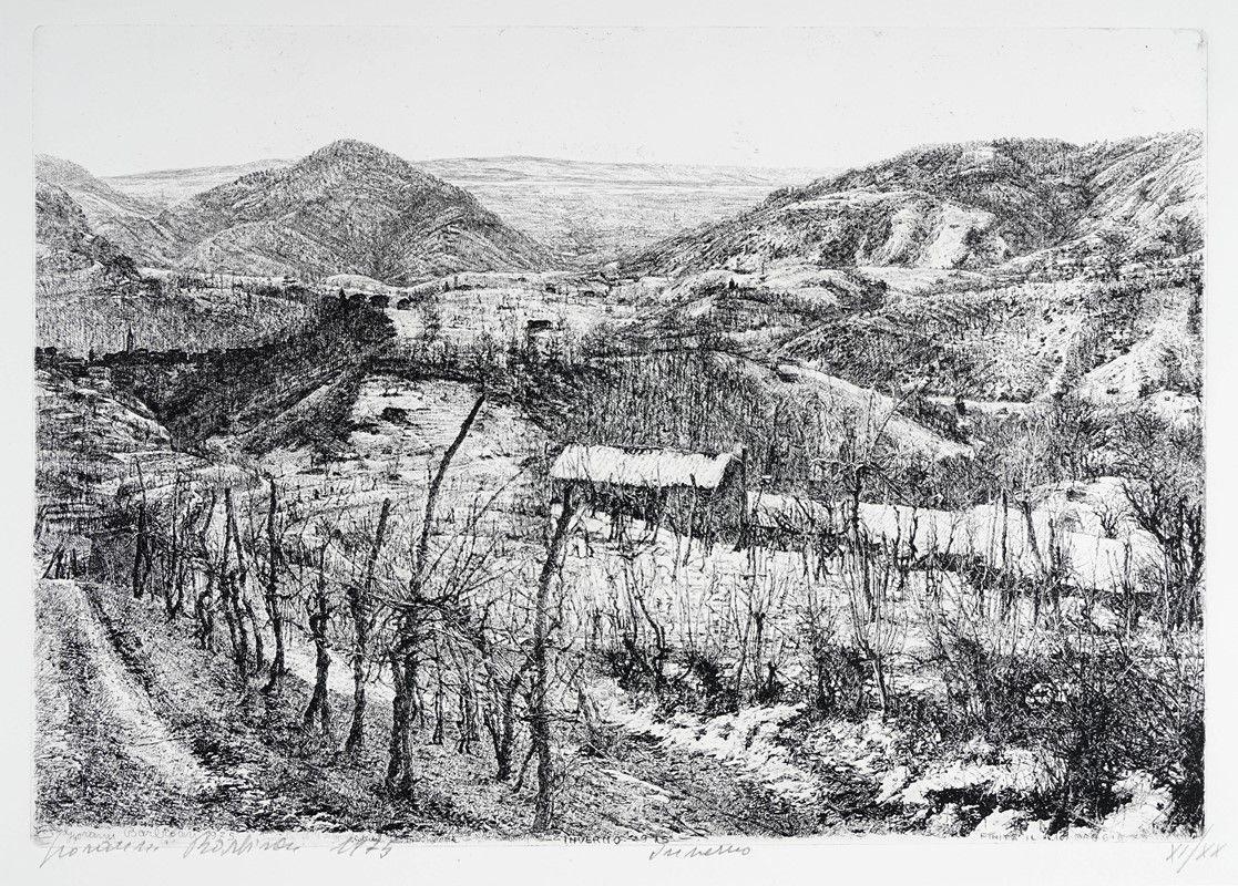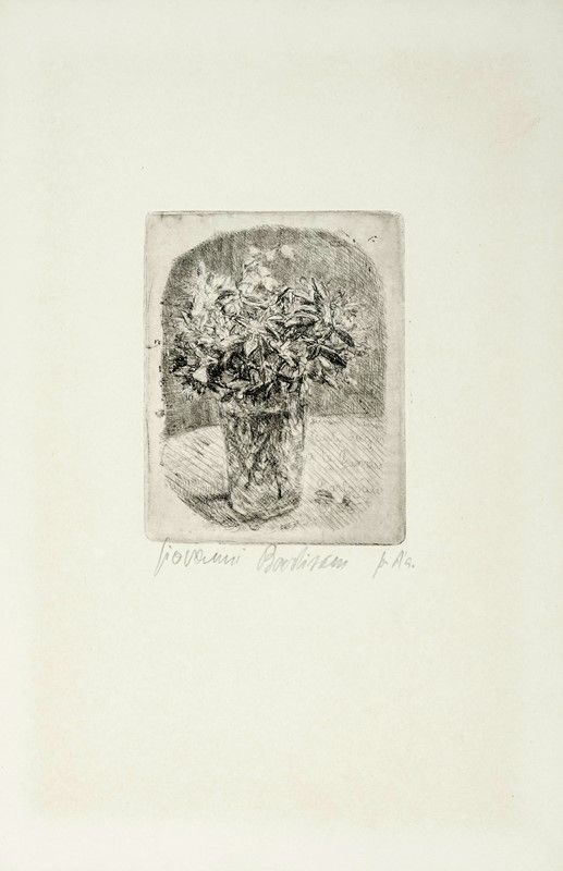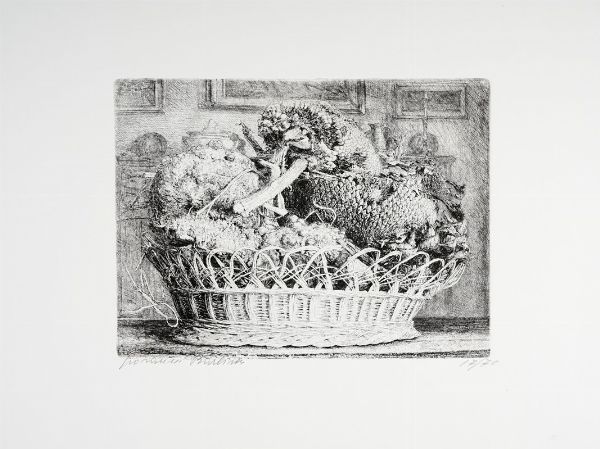 Raccolta di 5 acqueforti. mm 130/375x100/685. Foglio: mm 215/500x215/850. Tutte firmate ed alcune datate in lastra al margine inferiore. Ogni opera presenta firma e tiratura a matita ai piedi di ogni battuta. Tre sono ulteriormente datate a matita. Compongono il lotto le incisioni Inverno ed Autunno, della quale troviamo due formati differenti. Le due nature morte senza titolo presentano una dedica incisa in lastra al margine inferiore.