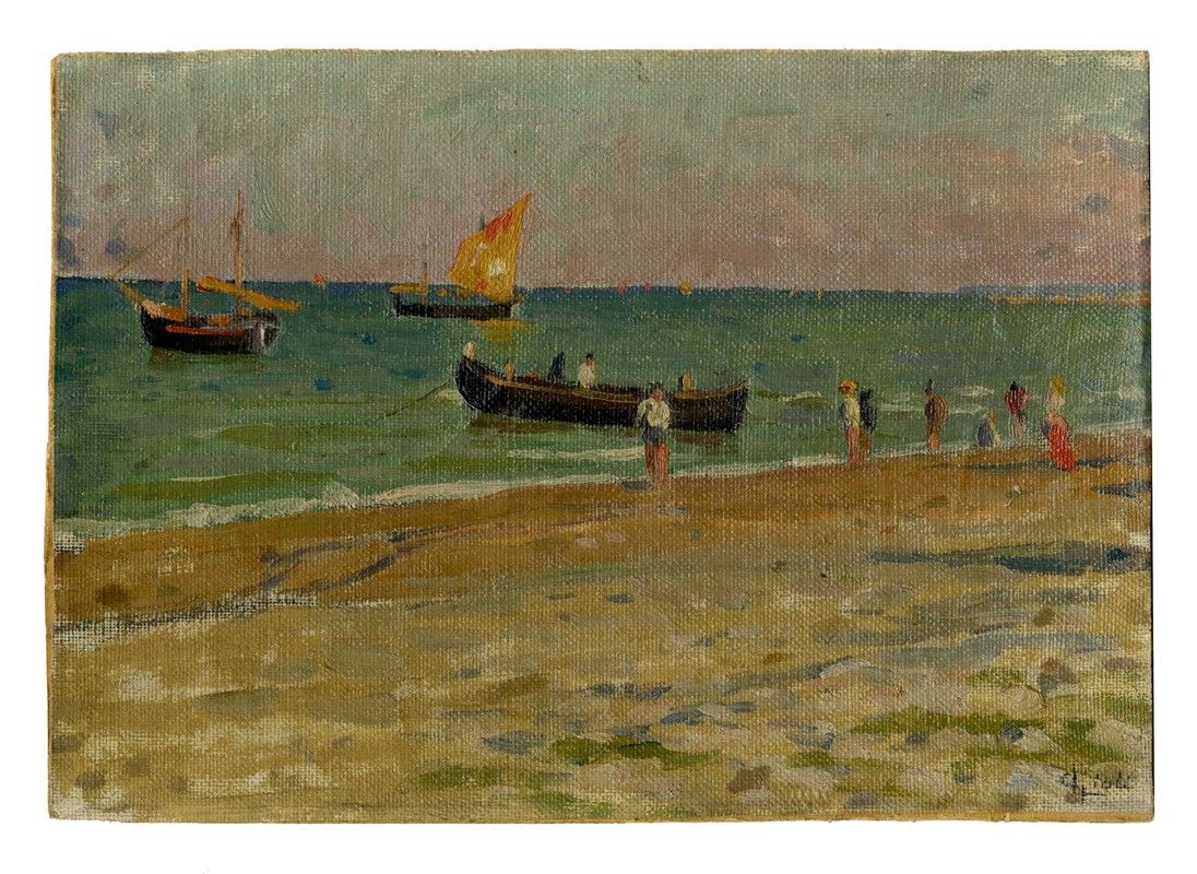 Olio su tela applicata. cm 21,5x31. Firmata all'angolo inferiore destro. Opera riconducibile ai primi periodi artistici di Luigi Gioli.