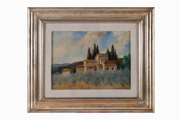 Olio su tela. cm 30x40. Firma e data in basso a destra. Provenienza: Galleria Faustini, Firenze, la cui etichetta è applicata al verso; importante collezione perugina.