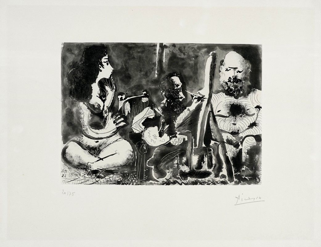 Acquaforte. mm 235x335. Foglio: mm 420x550. bloch, 1130. Firma a matita in basso a destra e tiratura in basso a sinistra; datata in controparte in lastra in basso a sinistra. Dal portfolio Les Bleus de Barcelone. Rara. Es.20/75. Provenienza: asta Finarte; importante collezione milanese.