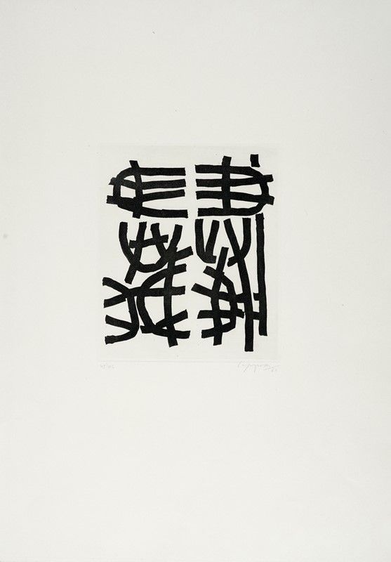 Acquaforte. mm 248x210. Foglio: mm 650x462. Firma e data a matita in basso a destra e tiratura in basso a sinistra. Doppia filigrana agli angoli sinistri, quella all'angolo in basso a destra è de Il Bisonte, che ha stampato l'opera. Es. 49/102.