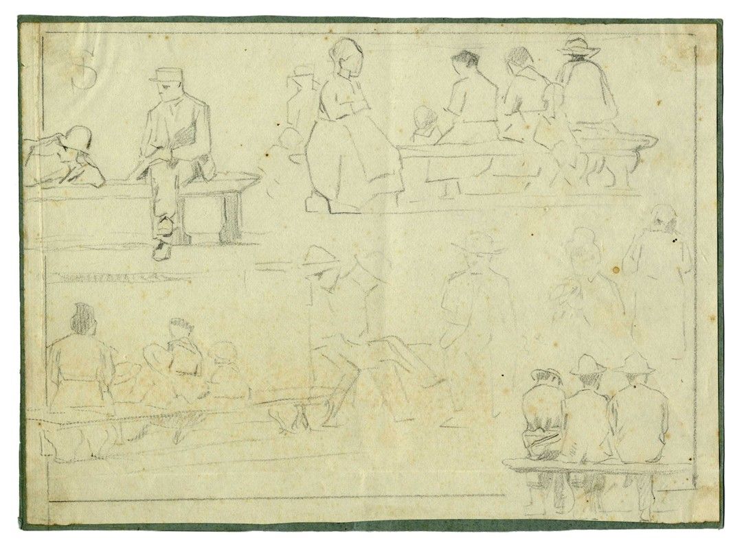 Matita su carta. mm 150x210. Siglato all'angolo superiore sinistro. Opera pubblicata nella Mostra di disegni di Telemaco Signorini alla Galleria Nazionale d'Arte Moderna di Roma nel 1969. Pubblicata insieme a molti altri studi di soggetti simili, codice catalogo n. 470.