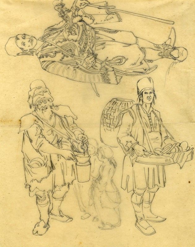 Matita su carta lucida. mm 300x236. LEONE, 163. Tre meravigliosi studi di figure orientali dal tratto pulito e chiaro. Provenienza: Galleria Alessandra Di Castro Antiques a Roma.