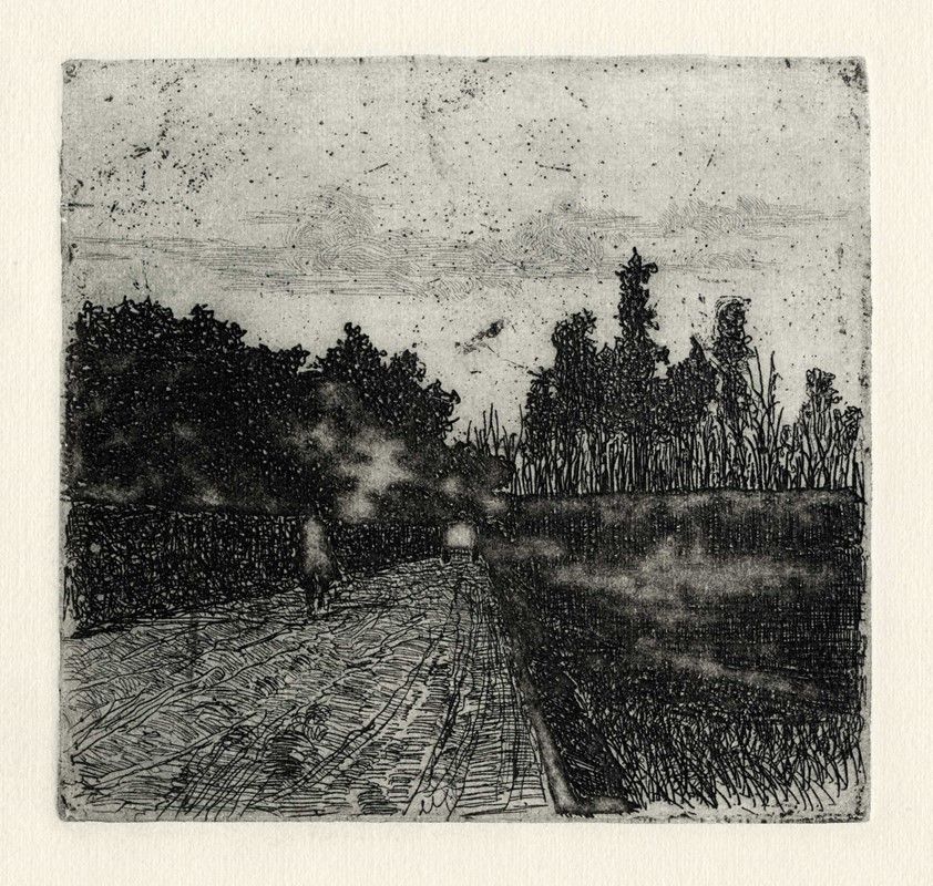 Acquaforte. mm 155x160. Foglio: mm 347x245. BABONI-MALESCI, CLXXIII. Iscritto: "Fattori" a matita in basso a destra. Tiratura postuma edizione Malesci.