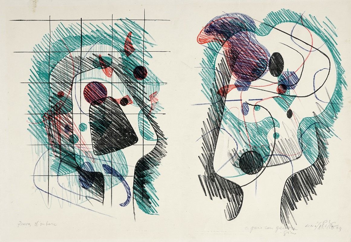 Litografia a colori. mm 310x465. Foglio: mm 350x495. Firmato e datato a matita in basso a destra. Iscritto: "A gaio con gaiezza, Simo" a matita in basso a destra e "Prova d'autore" a matita in basso a sinistra.
