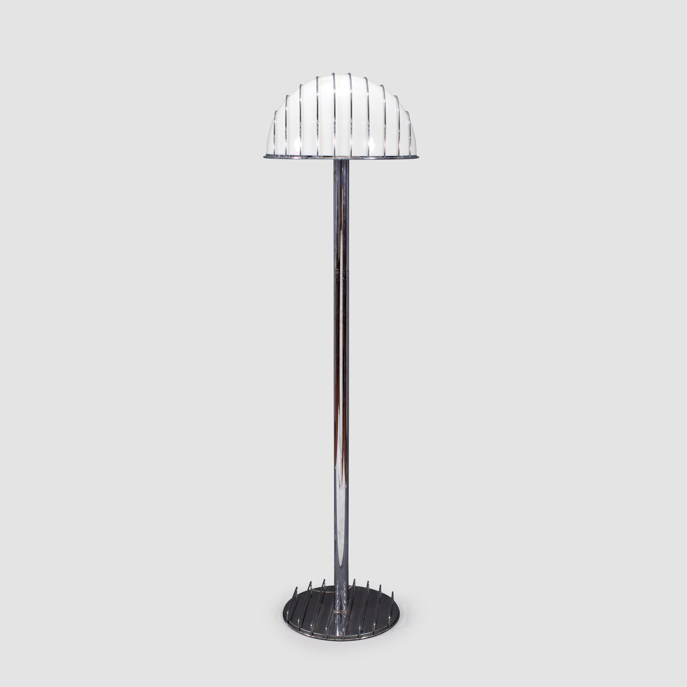 Italia, anni 70 lampada da terra mod. Griglia in metallo cromato e perspex