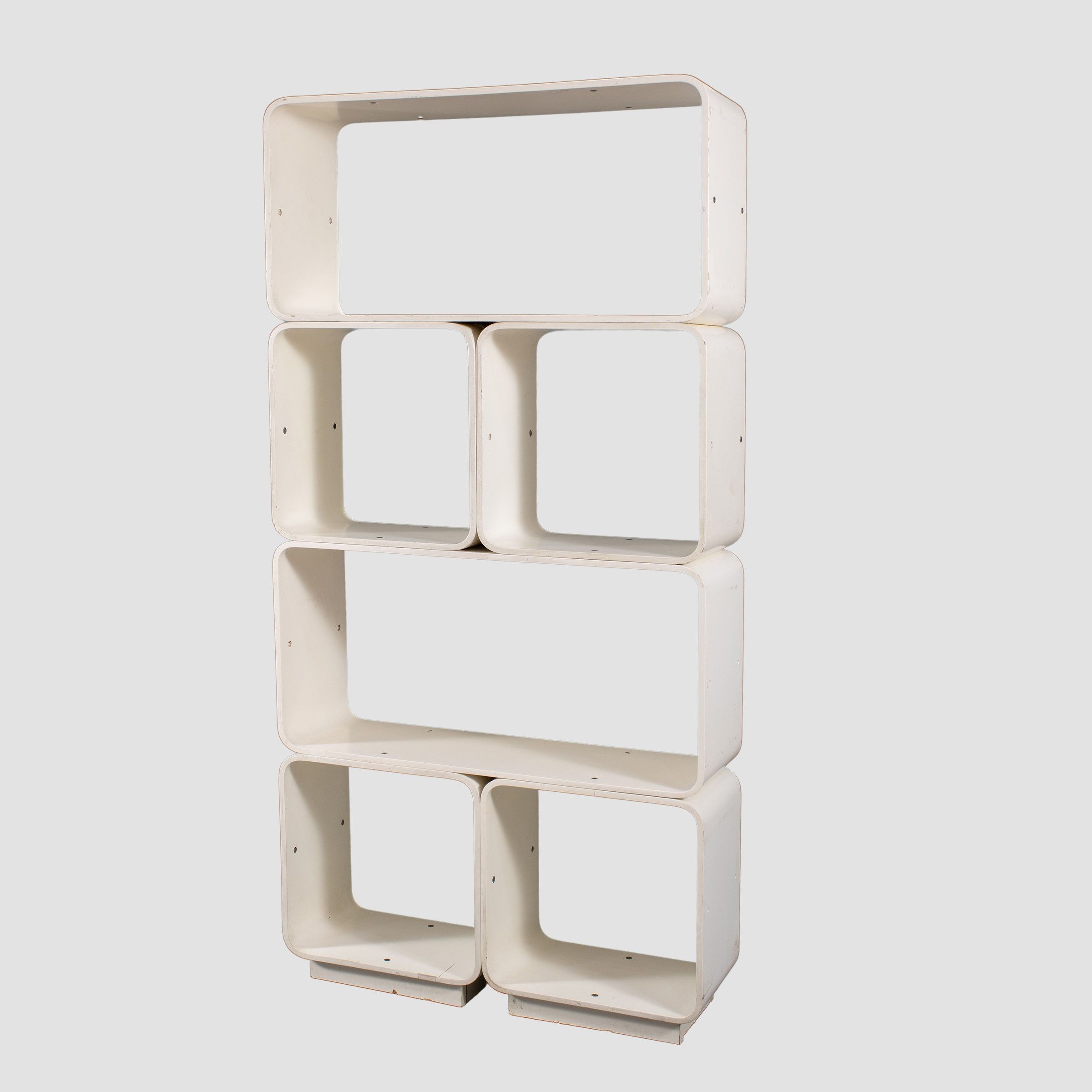 Italia, anni 60 libreria modulare in legno laccato, etichetta della produzione, usure