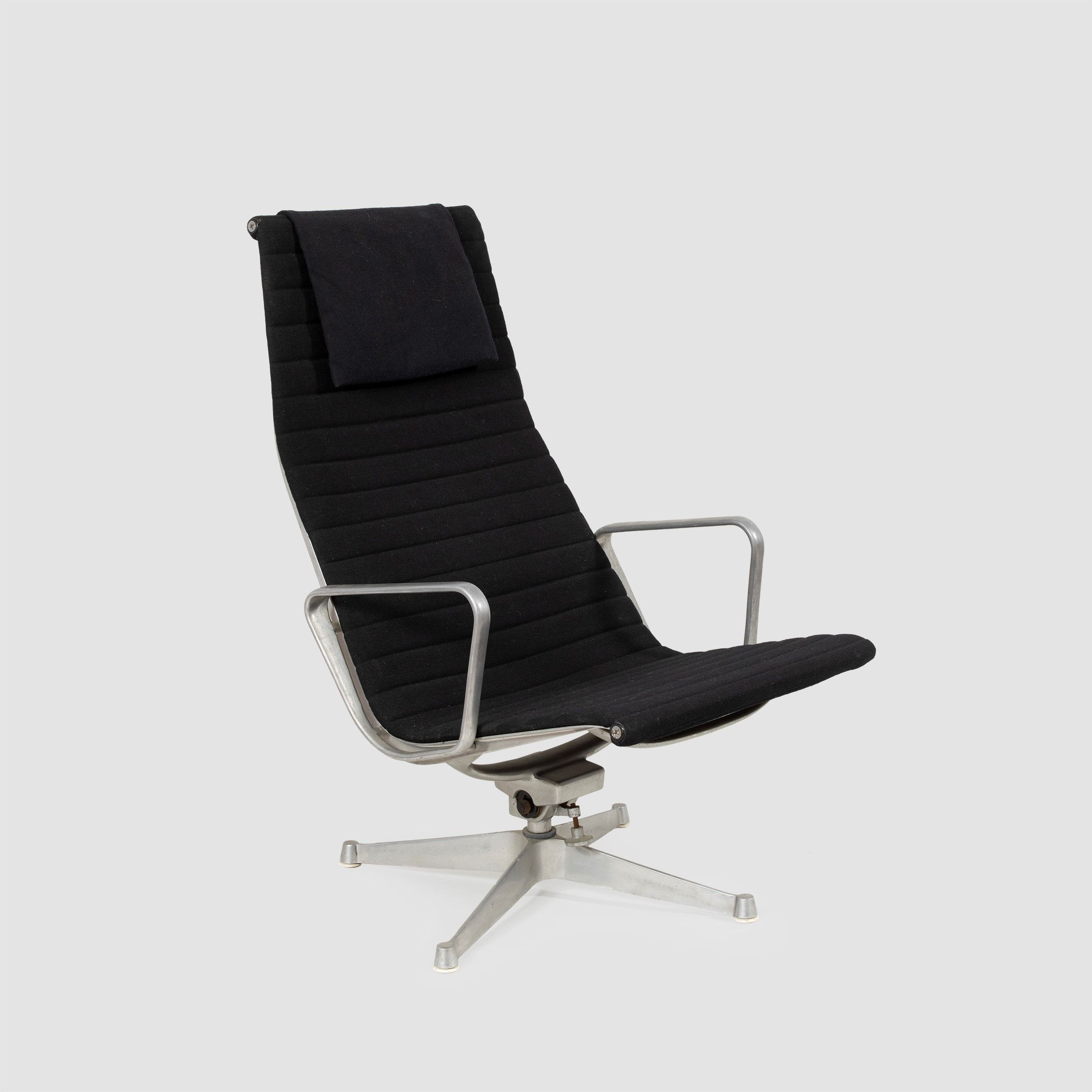 Stati Uniti, anni 60 poltrona mod. EA 124 in acciaio e tessuto imbottito, etichetta della produzione