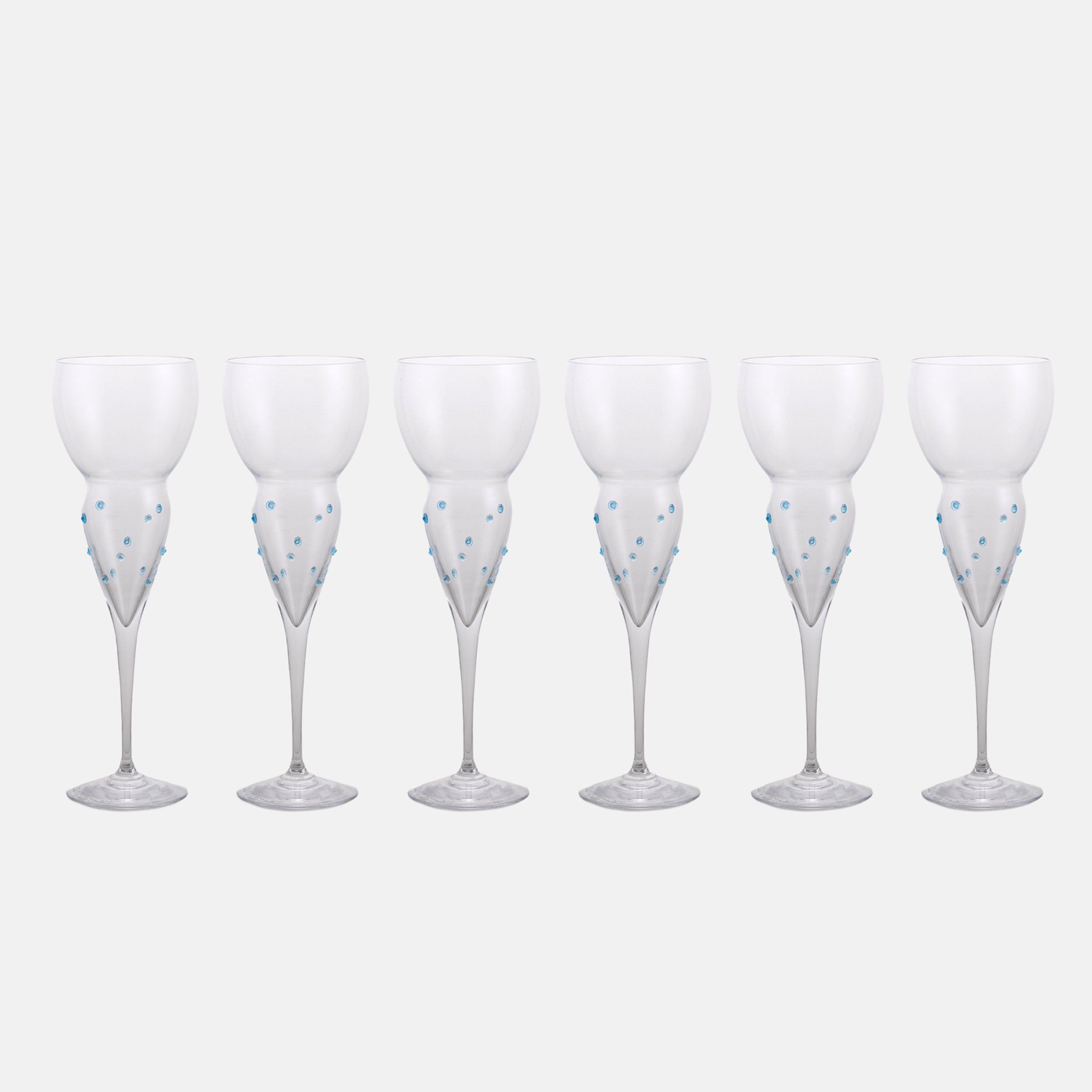 Italia, anni 90 sei bicchieri in vetro trasparente e colorato, firma a punta, entro scatola originale