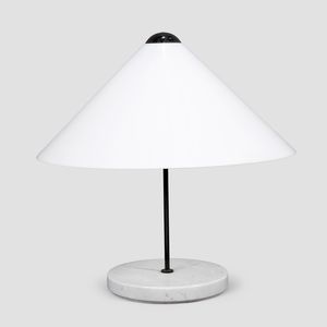 64x62 cm. Italia, 1973 lampada da tavolo mod. Snow in metallo verniciato, perspex e base in marmo, etichetta [..]