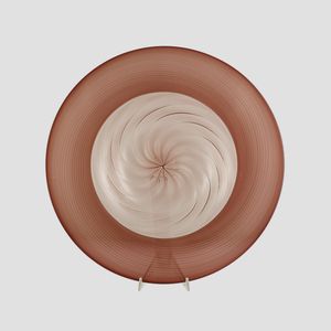 7x50 cm. Murano, 1989 grande piatto serie Opulus in vetro soffiato colorato, firma e data a punta