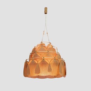 122x56 cm. Germania, 1973 lampada a sospensione mod. Shichi, serie Uchiwa, in bambù e carta di riso laccata, [..]
