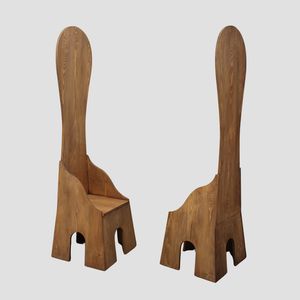 190x55x50 cm. Italia, 1972 coppia di sedie mod. Sedia Alta in legno, firma e marchio della produzione