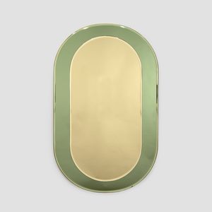 115x71 cm. anni 70 specchio in legno dipinto, vetro colorato e vetro specchiato, lieve difetto