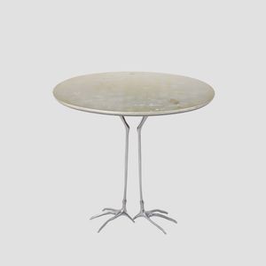 64x68x53 cm. Italia, 1980 ca. tavolino mod. Traccia in bronzo argentato e legno laccato, lievi difetti. Bibliografia: [..]